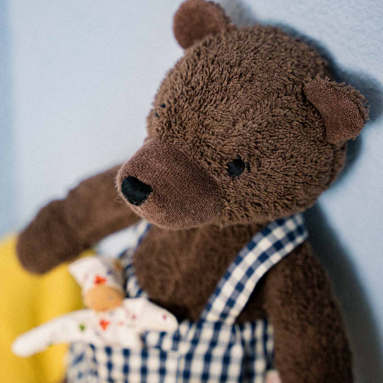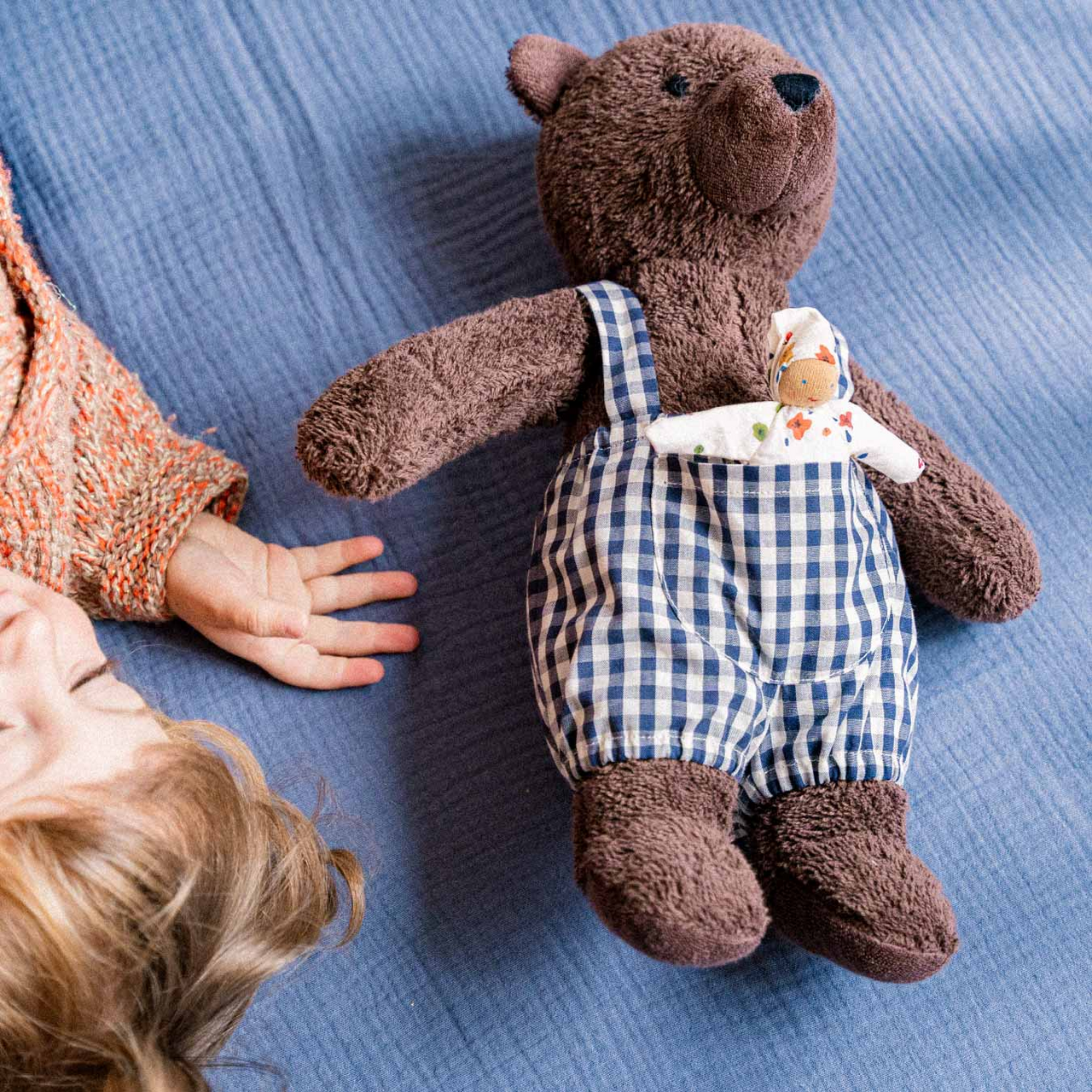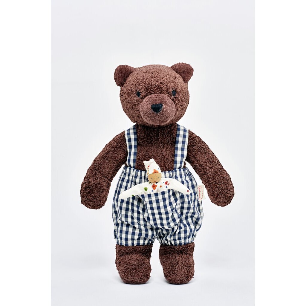 Bärin Bella ist eine echte Bärenmutter – sanftmütig und stark zugleich hat sie dein Kind in allen Lebenssituationen fest im Blick. Mit ihrem Fell aus weichem Baumwollfrottee lädt sie zum Kuscheln und Liebhaben ein. In ihrer karierten Latzhose aus Baumwollstoff versteckt sich ihr kleiner Begleiter, der von der starken Bärin beschützt wird und zu Rollenspielen einlädt. Welche Abenteuer wird dein Kind mit seiner starken Begleiterin erleben?