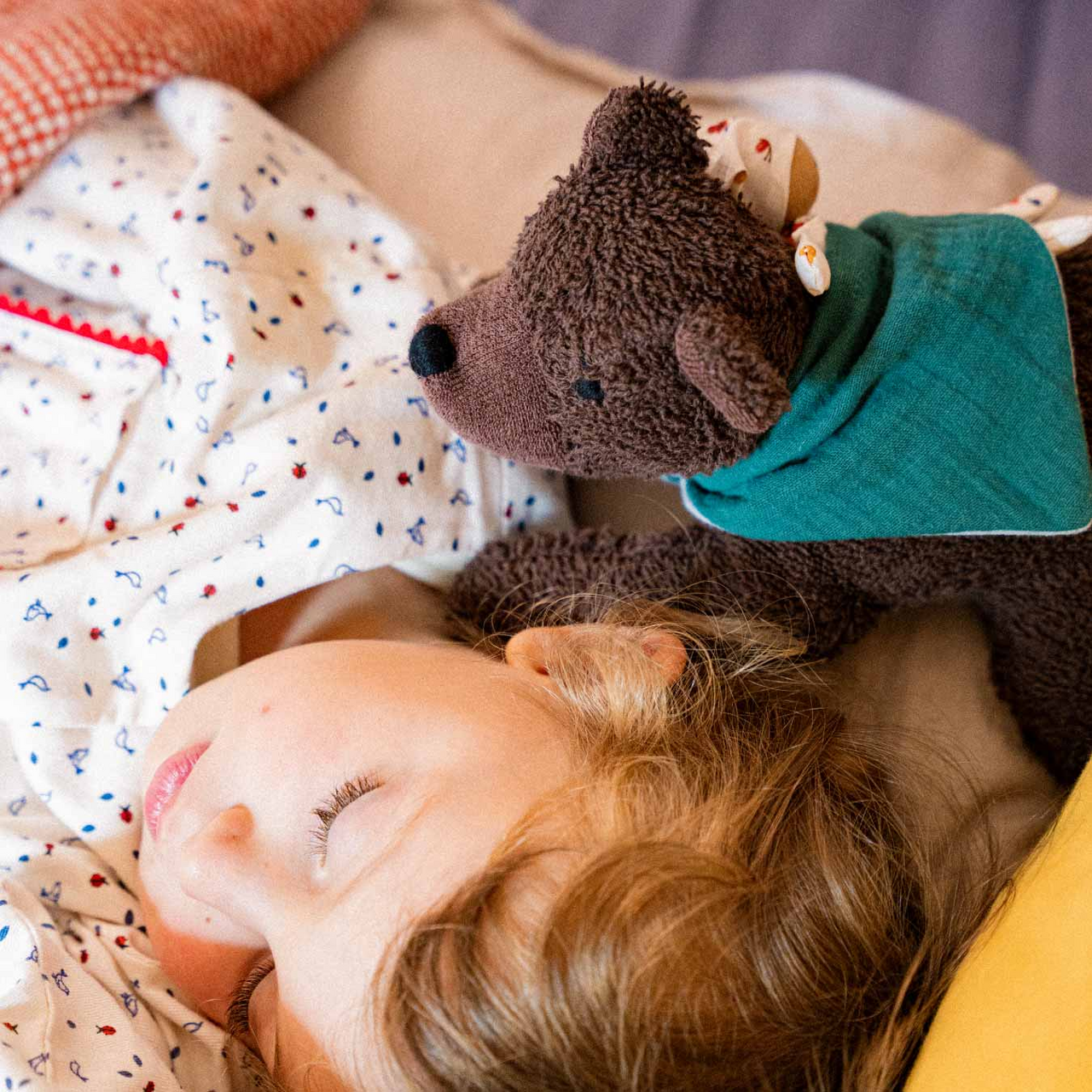 Man muss sich auch mal ein Päuschen gönnen. Kuscheltier-Bär Benji und sein kleiner Wichtel-Freund lieben es, gemütlich auf ihrem Musselin-Tuch zu liegen und sich gegenseitig die fantastischsten Geschichten zu erzählen. Die beiden sind schon ganz gespannt, dein Kind kennenzulernen und gemeinsam in ein neues Abenteuer zu starten – das Leben! Welche spannenden Dinge sie wohl gemeinsam erleben werden?