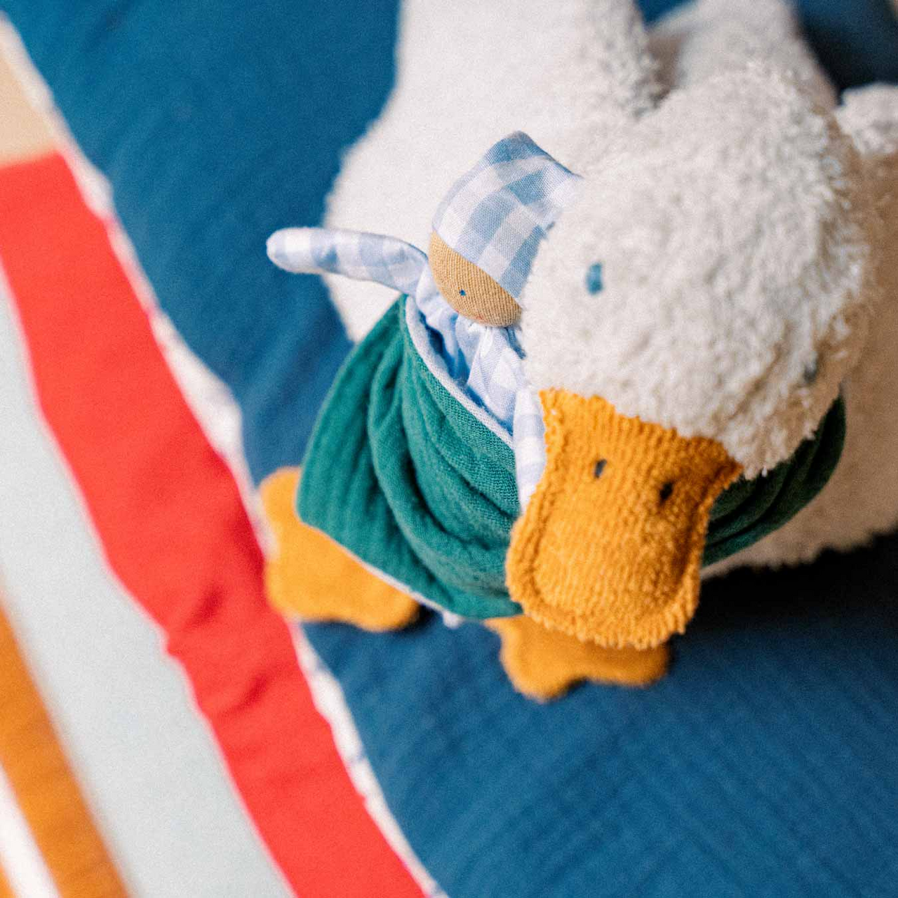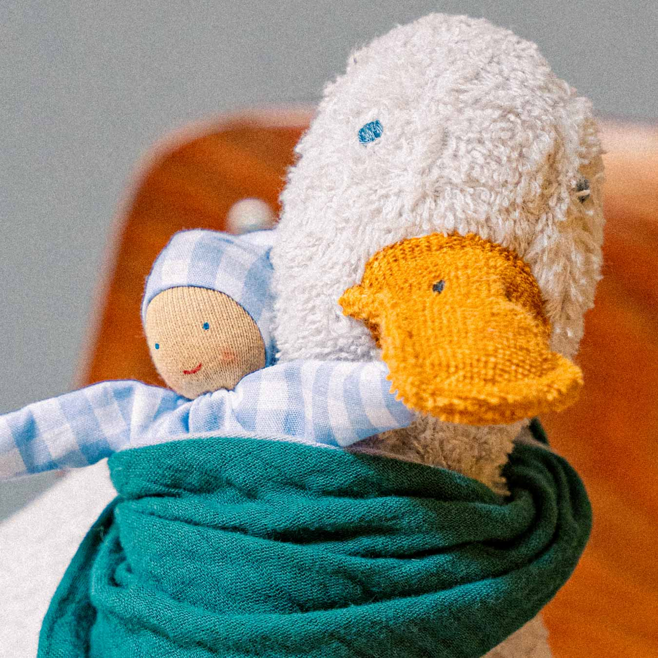 Die Plüsch-Ente Enzo und sein kleiner Wichtel-Freund sind vollkommen aus dem Häuschen. Sie lieben es, neue Menschen zu treffen und können es kaum erwarten, dein Kind kennenzulernen. Gemeinsam mit den beiden startet ihr in den Spiel- und Kuschelspaß! Der weiche Außenstoff der Kuscheltier-Ente lädt zum Schmusen ein und gemeinsam mit dem Wichtel lassen sich tolle Abenteuer erzählen und nachstellen. Lasst eurer Fantasie freien Lauf!
