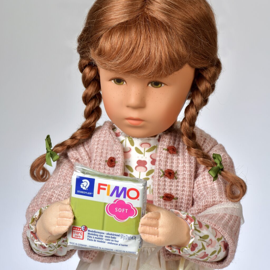 Unsere Sammlerpuppen und Bekleidung werden handgefertigtt und haben eine Lieferzeit von ca. 30 Werktagen. Fifi ist ein limitiertes Sondermodell zum 120. Geburtstag von Käthe Kruses Tochter Sophie, liebevoll Fifi gerufen. Wie alle Kinder von Käthe Kruse unterstützte auch Sophie die Mutter in der Puppenwerkstätte. Sie war vor allem für die Schaufensterfiguren verantwortlich. Außerdem war Sophie sehr erfinderisch und entwickelte unter anderem die Modeliermasse Fimoik, die heute noch unter dem Namen Fimo bekannt ist. Unser Sondermodell Fifi hat daher in einer Tasche auch ein Päckchen Fimo dabei. Die Puppe ist 52 cm groß und hat einen klassisch mit Reh- und Rentierhaar handgestopften Körper. Der Puppe VIII Kopf aus Polysterol ist künstlerisch von Hand bemalt. Die Echthaarperücke trägt Fifi zu Zöpfen frisiert. Die hübsche Bekleidung ist detailreich gefertigt. Fifi ist auf nur 20 Puppen limitiert.