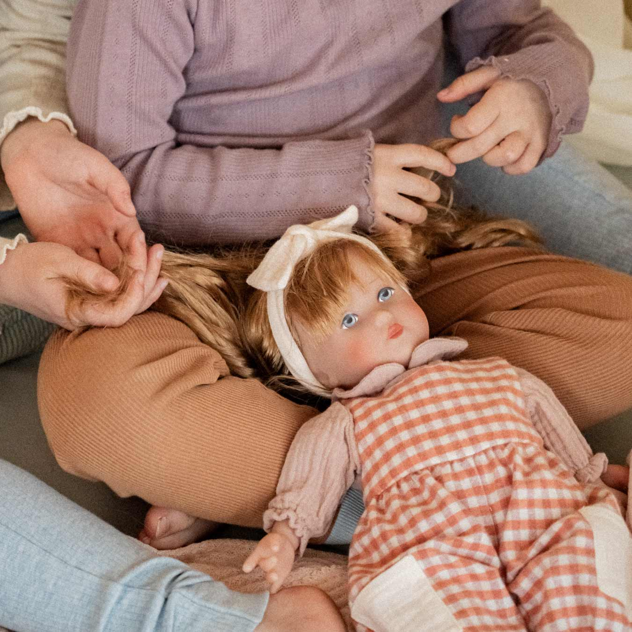 Glückskind Ella liebt ihre langen Haare. Am liebsten trägt sie sie in Zöpfen mit einem süßen Haarband, aber sie liebt es auch, neue Frisuren auszuprobieren. Mit dieser Puppe sind der Fantasie deines Kindes keine Grenzen gesetzt. Durch das Ausdenken von gemeinsamen Abenteuern bis zur kreativen Gestaltung der wunderbar weichen Haare wird die Fantasie deines Kindes gefördert. Zu Hause oder Unterwegs, mit einem treuen Puppenfreund fällt alles leichter.