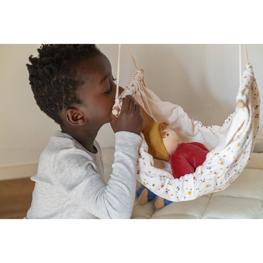 Ob zwischen Palmen oder im Kinderzimmer, in einer Hängematte kann man immer super entspannen. Die Waldorfhängematte ist ein tolles Accessoire für die Lieblingspuppe deines Kindes. Außerdem kann darin die Puppe gut aufbewahrt werden, damit sie ihren festen Platz hat und schnell wiedergefunden werden kann.