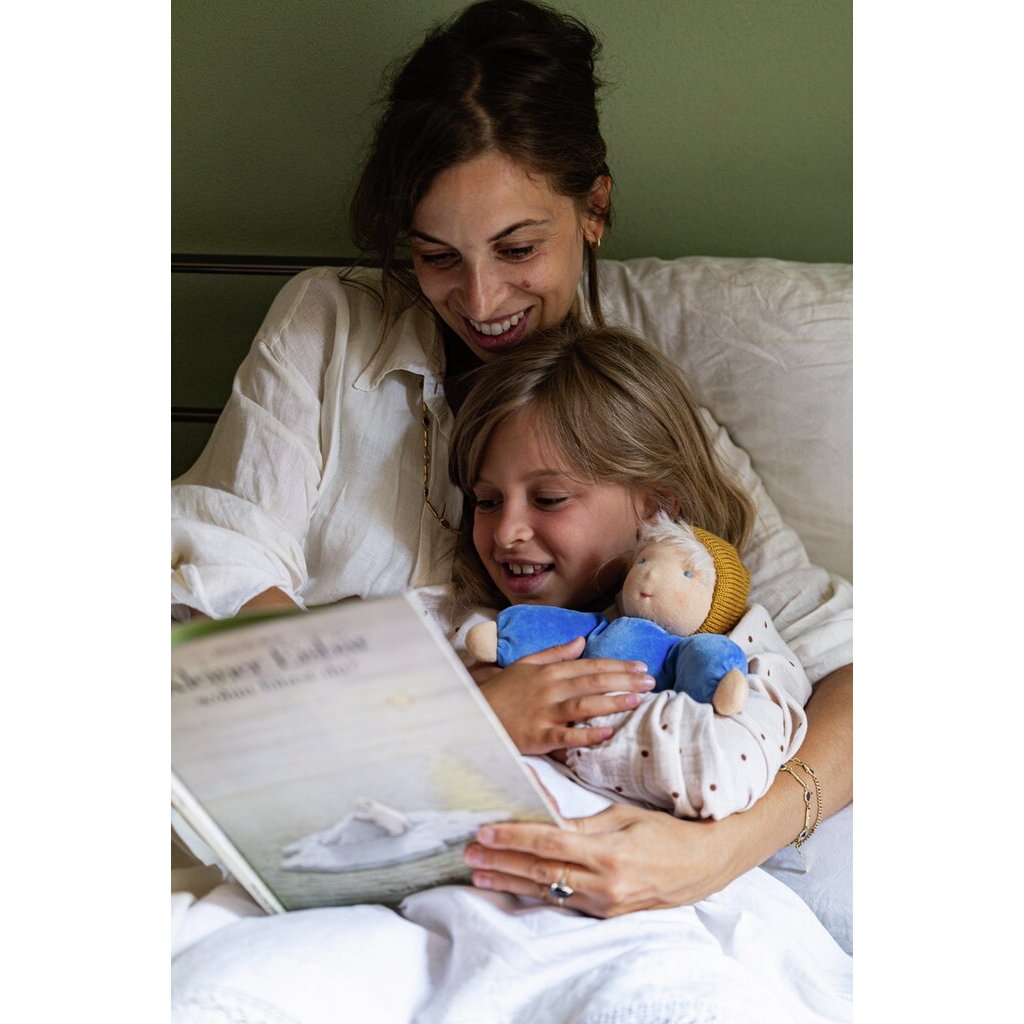 Wunderbar weich und warm – unsere Nanas sind die größten der Waldorf-Puppenfamilie und einfach zum Liebhaben. Mit einer Nana zieht ein Freund oder eine Freundin für dein Kind ein und ist immer und überall dabei – ob im Bettchen, im Wagen, zum Spielen oder Trösten. Nanas sind in vielen schönen Farben erhältlich, bestehen aus weichstem Bio-Nickistoff und sind mit Bio-Schafwolle gefüllt. Jede Puppe wird in liebevoller Handarbeit gefertigt und ist – wie dein Kind – einzigartig.